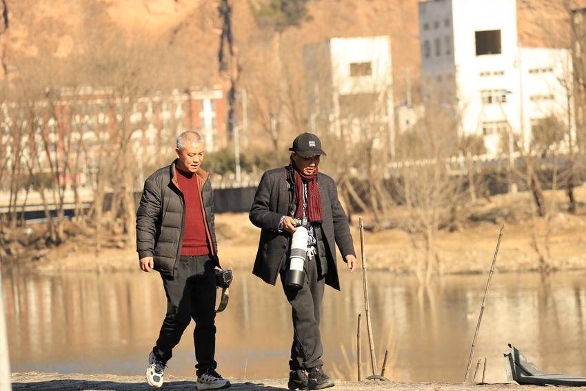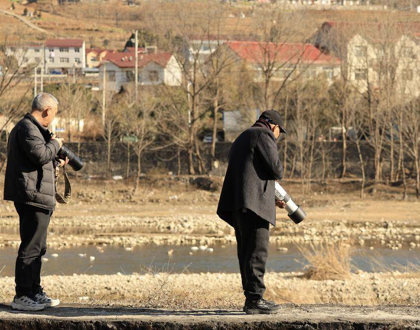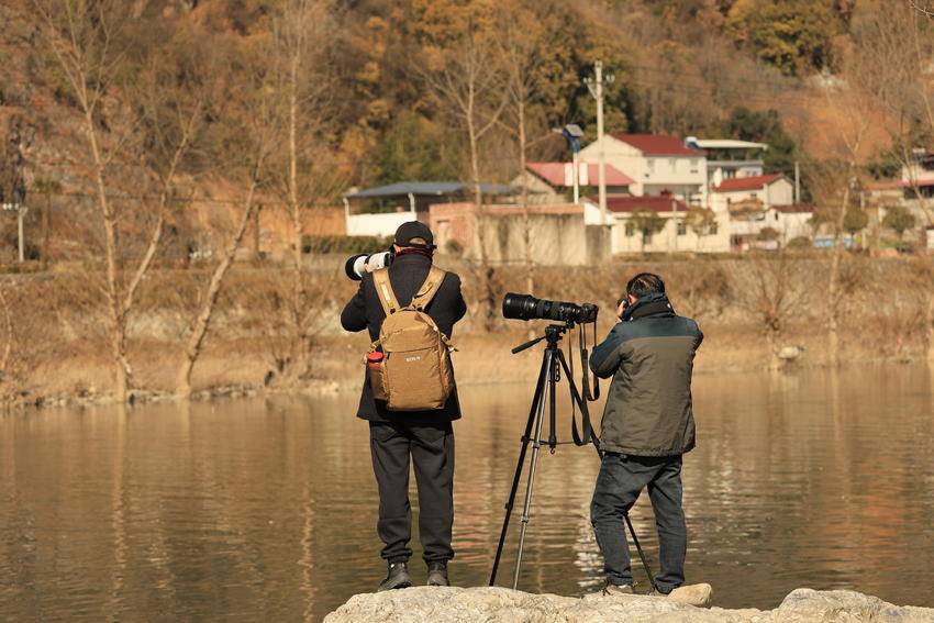 摄影爱好者在河边拍摄。(摄影:宦娟)