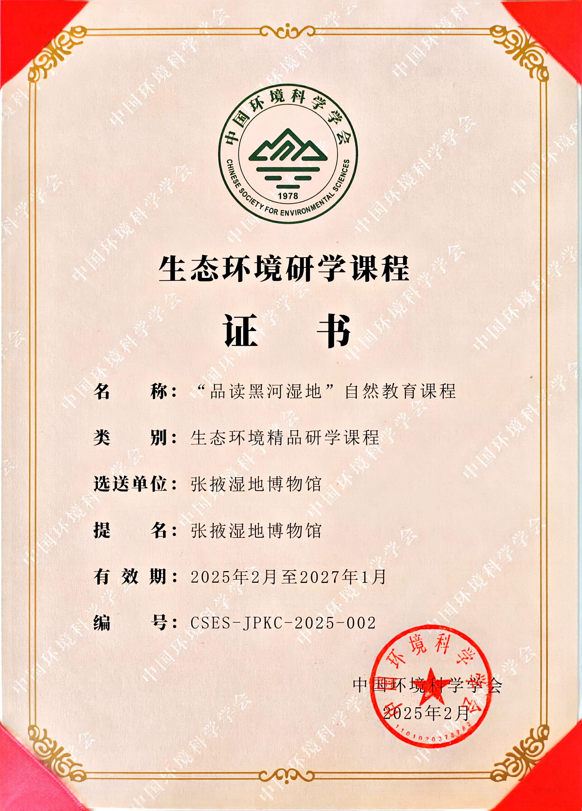 近日,由中国环境科学学会主办的2025年生态环境科技传播与普及转化研讨会在江苏盐城召开。会上颁发了2025年度生态环境科技成果科普化典型案例和优秀科普作品,以及2024年度生态环境精品研学课程和线路等评议结果。张掖湿地博物馆申报的《品读黑河湿地》自然教育课程,从众多参选课程中脱颖而出,成功入选全国12个生态环境精品研学课程。