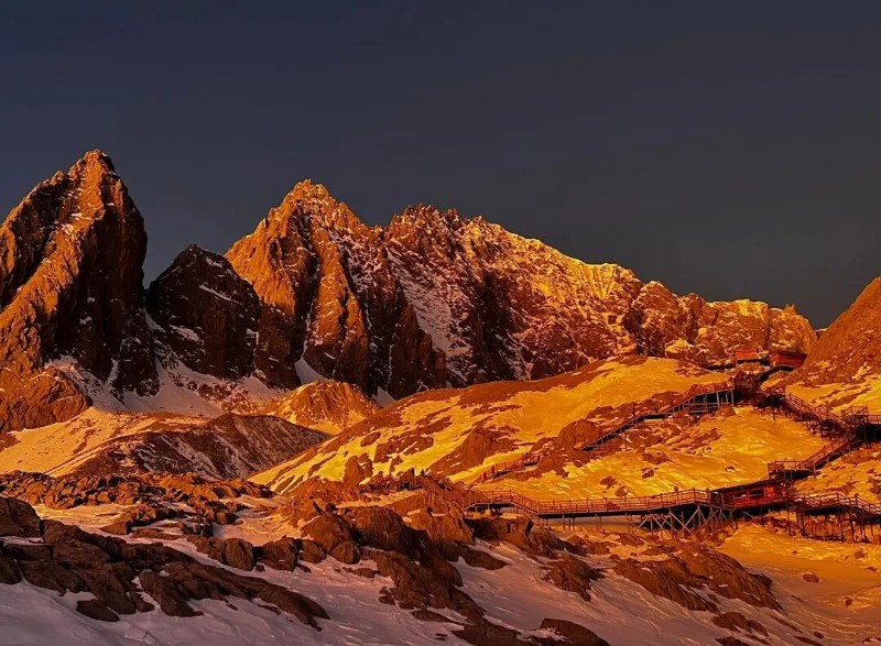秋季的玉龙雪山,每一次“日照金山”都是自然与人文的双重馈赠。愿你在丽江的清晨,邂逅属于自己的“金色幸运”。