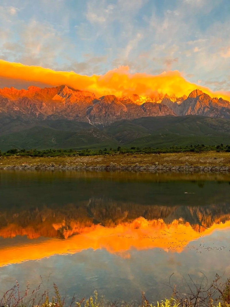 甘海子草甸是玉龙雪山脚下的“黄金观景台”,广袤草甸无任何遮挡,可直面雪山主峰全景,搭配清晨的云海与水中倒影,能随手拍出电影感画面。自驾从城区出发约1小时,导航“甘海子”即可到达。