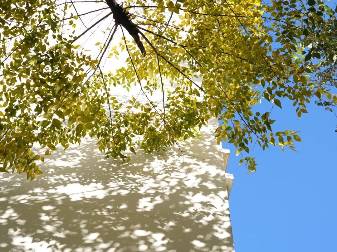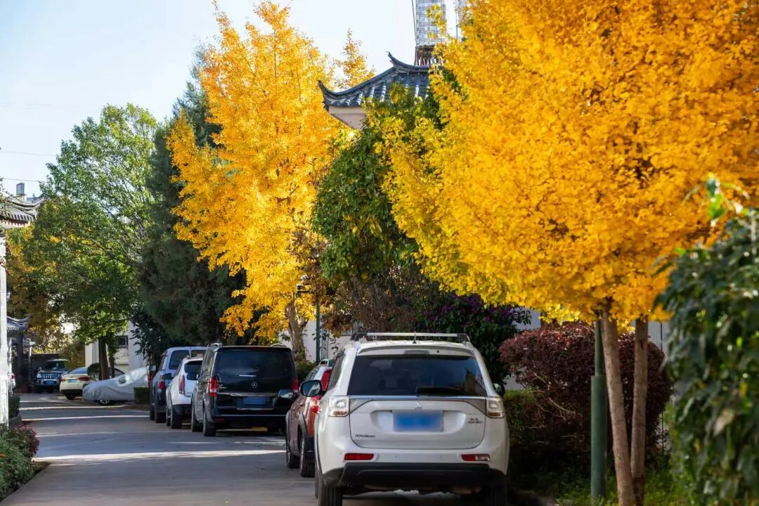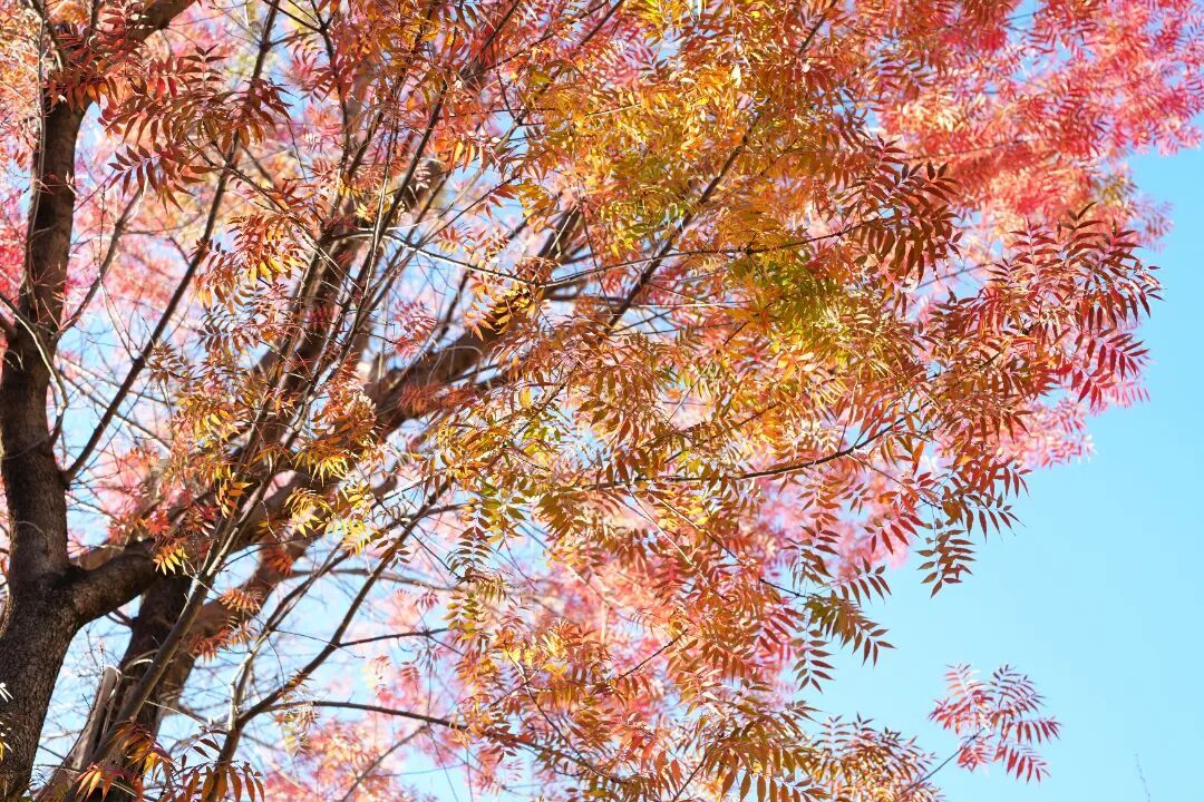 金黄欲坠的银杏、绯云流丹的枫叶、四季不改的青翠松柏……这些色彩不曾被寒风抹去,反而在清冽的空气里愈发鲜明。