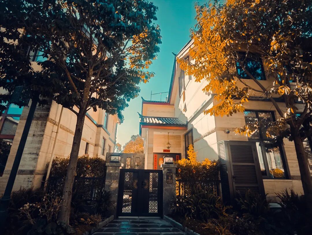 房前一树灿烂,墙头枫影摇曳,墙角几丛深绿,晨光与夕阳轻轻走过安静的石板路。美,就藏在这些俯仰可得的日常缝隙里。