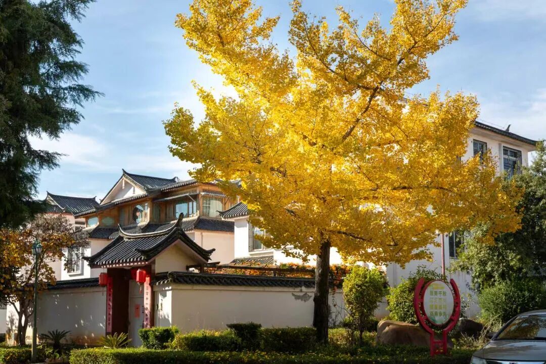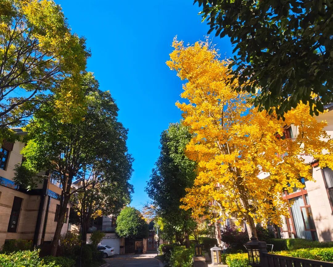 你看,那几株银杏站在庭院中央,褪去了夏天的青涩,换上了一身金箔般的盛装。阳光穿过枝叶,将细碎的光斑洒在青石板路上,风吹过,满地“碎金”簌簌作响,像是大自然传来的冬日絮语。