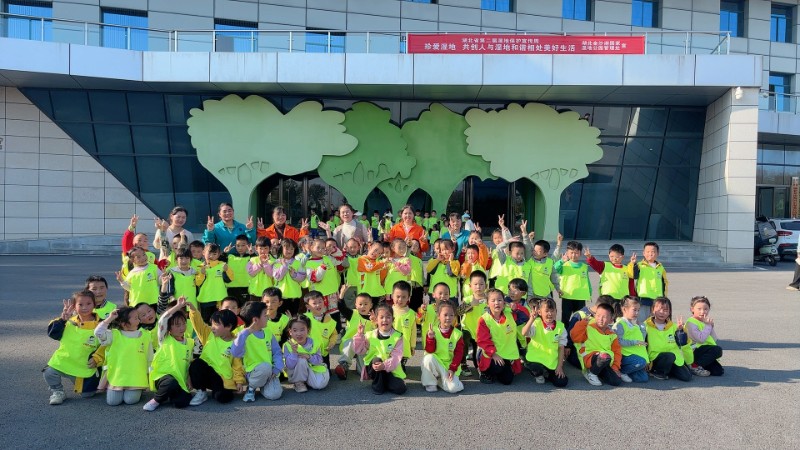 萌娃研学“趣”体验,小手守护大湿地。红安县思源实验幼儿园的300名小朋友分批走进湿地科普馆,近距离观察湿地生态标本,学习湿地生态系统知识。在园区户外,一场别开生面的“捡秋护湿”活动开展,孩子们在老师的带领下捡拾落叶、清理杂物,用实际行动践行湿地保护理念。